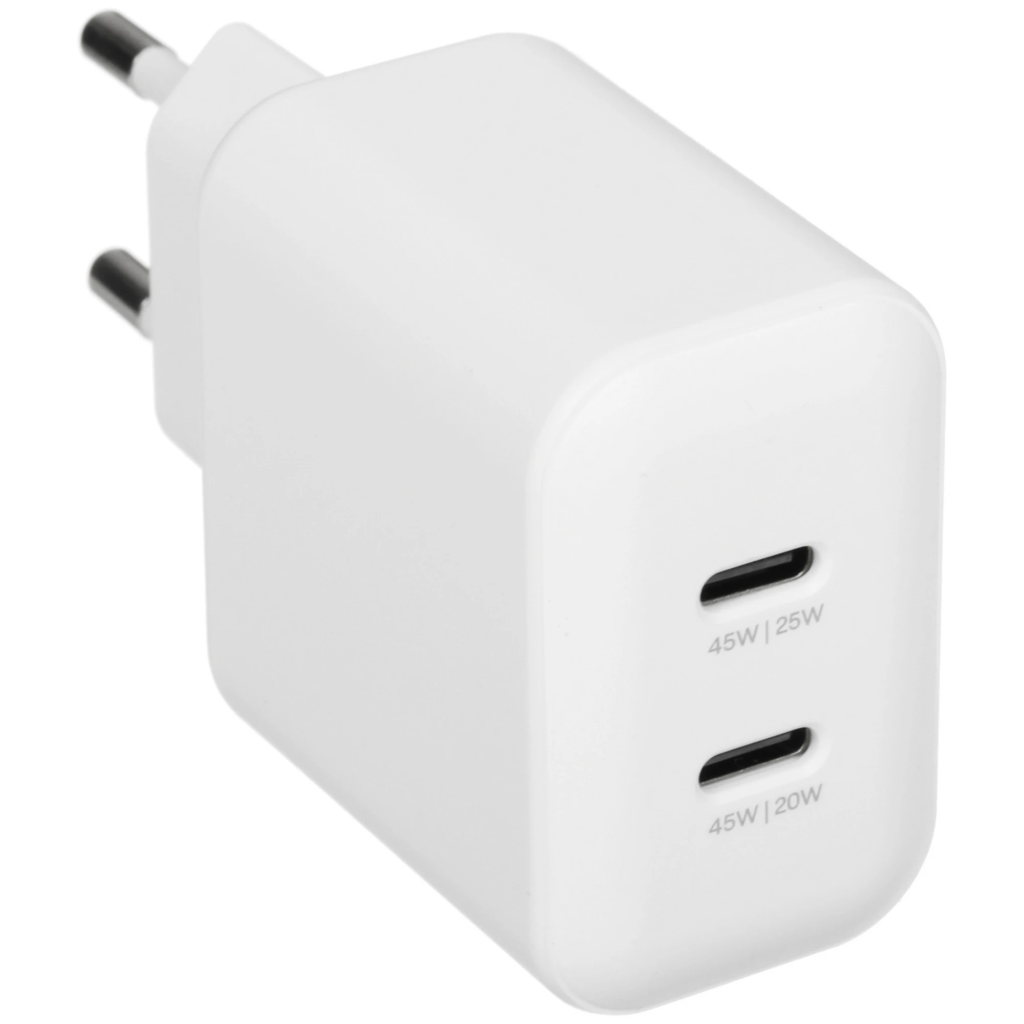 — многофункциональное сетевое зарядное устройство с двумя портами USB‑C и поддержкой общей мощности до 45 Вт. Оно сочетает современный дизайн, компактность и высокую производительность, обеспечивая быструю подзарядку двух устройств одновременно.